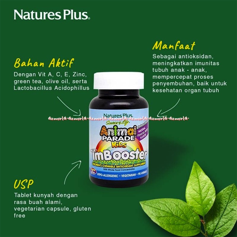 NATURES PLUS ANIMAL PARADE 45S. Meningkatkan daya tahan tubuh Membantu melindungi tubuh dari infeksi termasuk flu dan pilek Membantu pembentukan tulang dan gigi serta menjaga kesehatannya. Merah - Kuning - Biru - Hijau - Ungu.